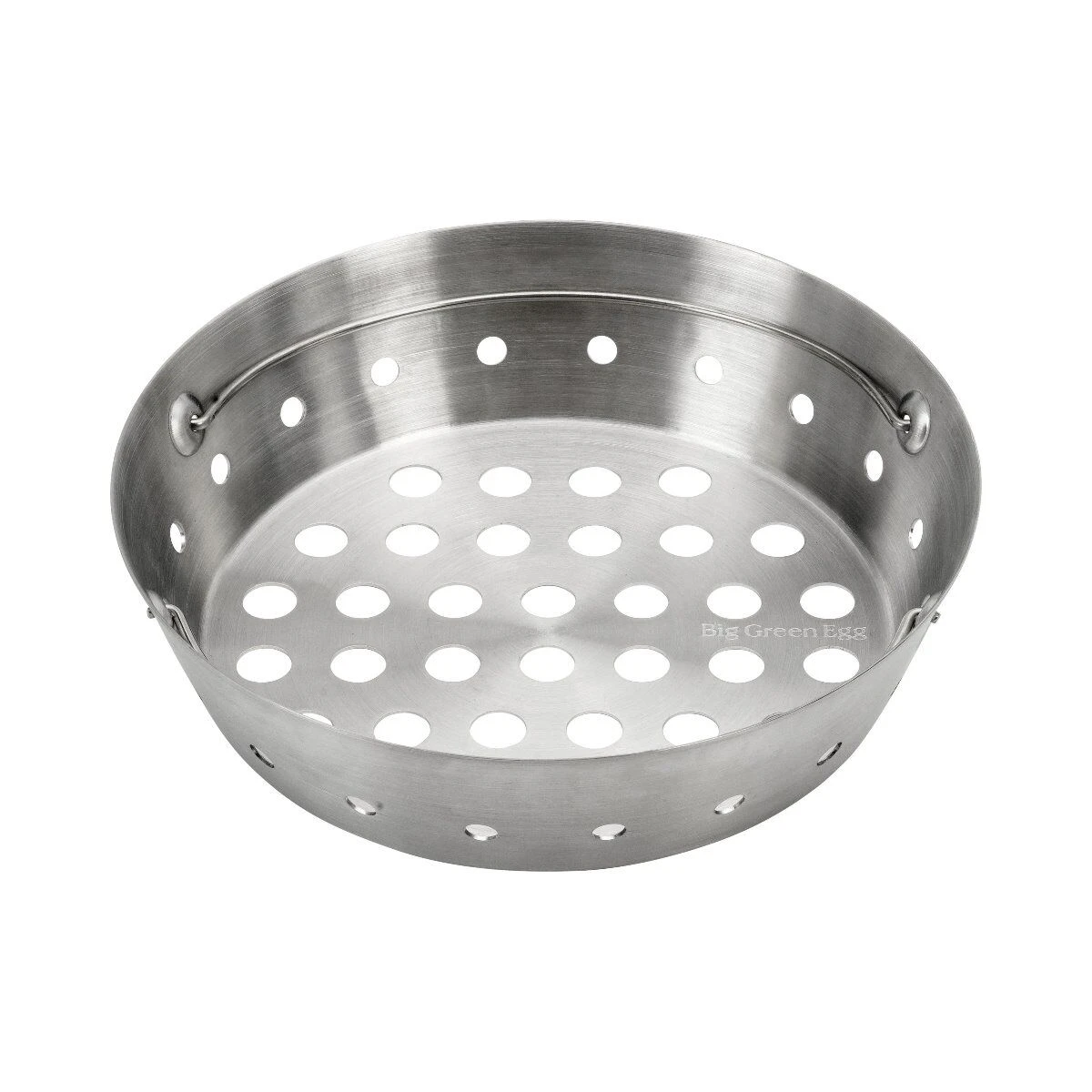 Met de roestvrij stalen Big Green Egg Fire Bowl kolenmand haalt u het allerbeste uit uw Big Green Egg. De mand zorgt voor een betere luchtcirculatie, waardoor het houtskool sneller ontbrand. Bovendien wordt het schoonmaken voortaan een stuk gemakkelijker! De kolenmand is op maat gemaakt en voorzien van praktische handgrepen voor veilig gebruik.Tijdens het gebruik is de kolenmand gemakkelijk bij te vullen. Gebruik de Big Green Egg Fire Bowl voor het ontsteken en branden van houtskool tijdens het grillen.