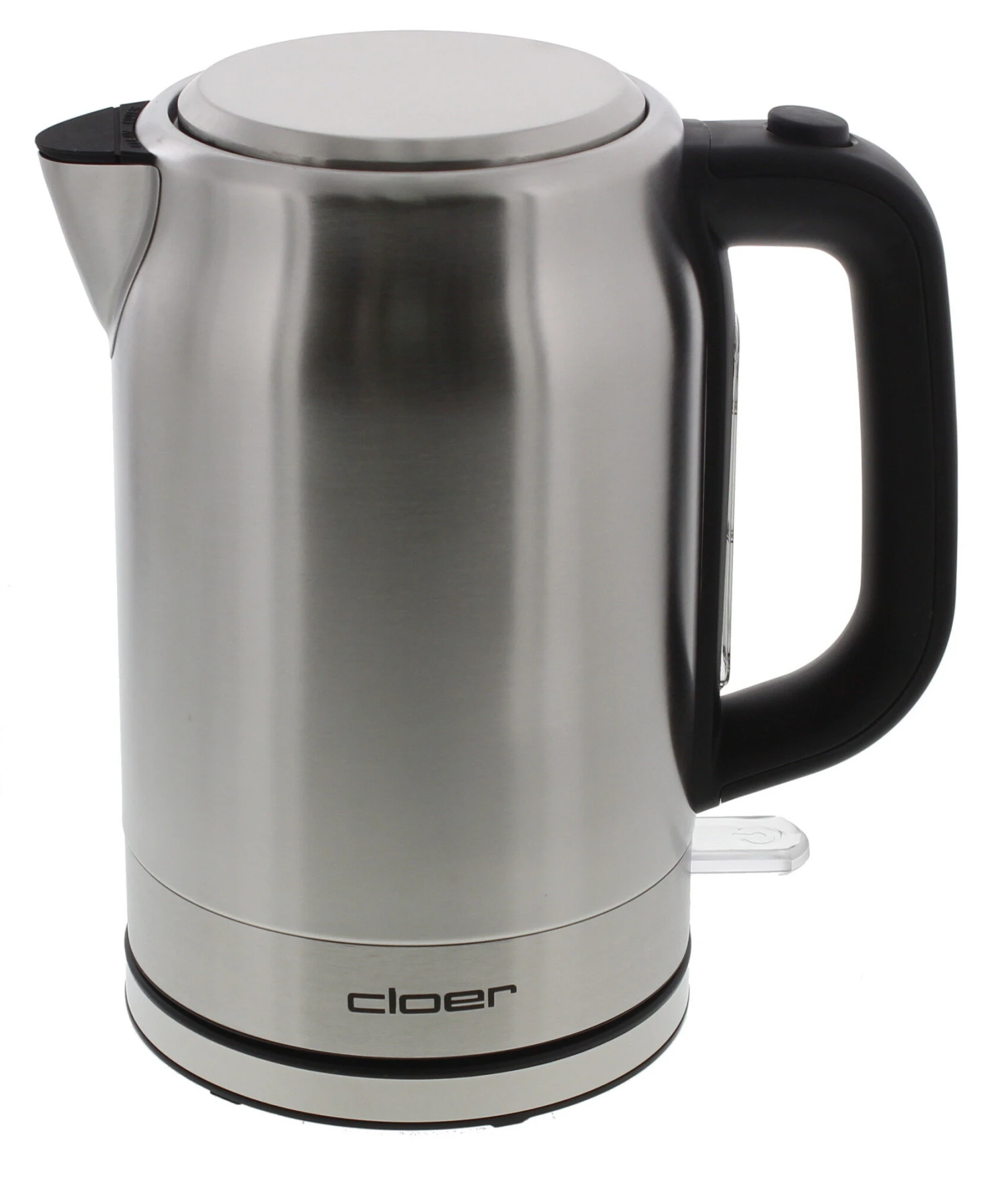 De waterkoker van Cloer is vervaardigd uit roestvrij staal is voorzien van een startbeveiliging, droogkookbeveiliging en een beveiliging tegen oververhitting. Hierdoor slaat de waterkoker automatisch af, zodra het water gekookt is. Doordat het snoer bevestigd is aan de basis, is de waterkoker 360° draaibaar.