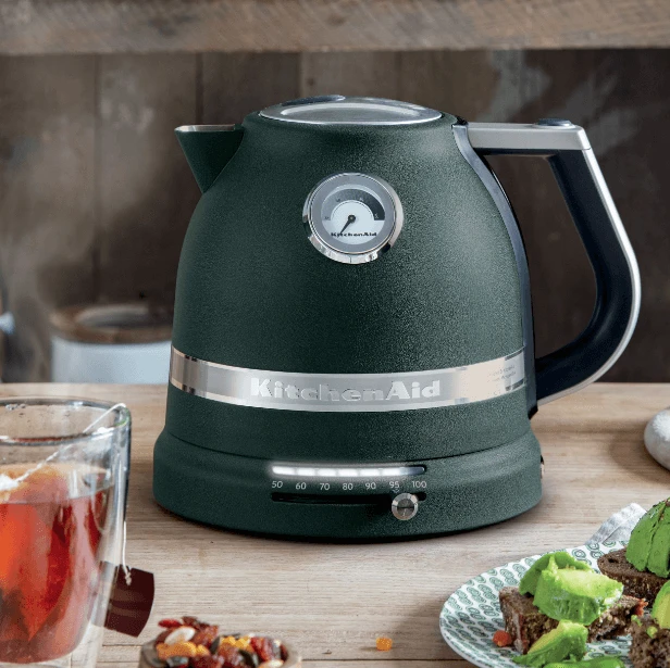 Met de KitchenAid Artisan waterkoker kunt u water tot meerdere temperaturen verhitten: van 50ºC tot 100ºC. Dankzij de dubbele wanden blijft het water na het verwarmen op temperatuur. De temperatuurmeter op de waterkoker geeft de temperatuur precies weer, ook wanneer de waterkoker niet op de voet staat. De soft grip handgreep van de koker is altijd stevig en veilig vast te pakken.