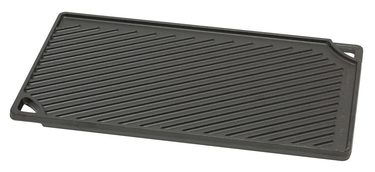 De zwarte Lodge Logic gietijzeren grillplaat is 42,5 cm breed en 24,1 cm lang. Omgedraaid is de grillplaat als bakplaat te gebruiken. Gebruik de plaat voor het bakken en grillen van bijvoorbeeld vis, pannenkoeken en steaks.