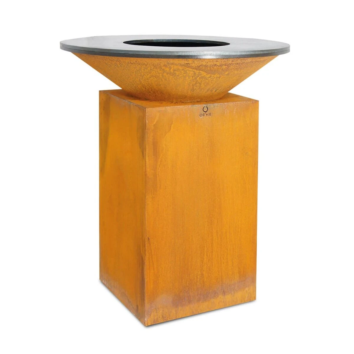 De OFYR is weerbestendig en kan in alle weersomstandigheden buiten blijven staan en gebruikt worden. Het staal zal zichzelf beschermen met de kenmerkende oranje oxidatielaag die CorTenstaal vormt.