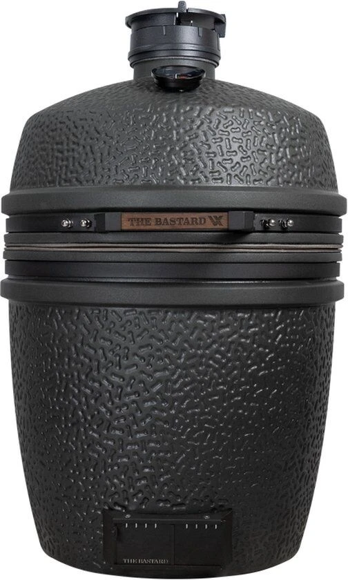 De The Bastard VX is een eivormige houtskoolbarbecue, leverbaar in verschillende maten. De barbecue is gemaakt van keramiek. Dit zorgt ervoor dat de warmte goed wordt vastgehouden, stabiel blijft en dat de buitenzijde tijdens gebruik koel blijft. U regelt de temperatuur eenvoudig dankzij 2 verschillende luchtinlaten en de temperatuur is tevens duidelijk af te lezen op de vernieuwde zwarte thermometer in de deksel. Gesloten zorgt de vorm van de kamado voor een specifieke luchtcirculatie. Deze luchtcirculatie, convectie, neemt smaakelementen van het houtskool mee en zorgt voor een gelijkmatige garing en warmteverdeling. Zowel aan de boven- en onderzijde van ingrediënten.